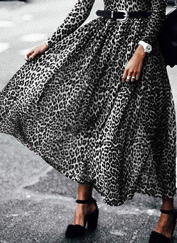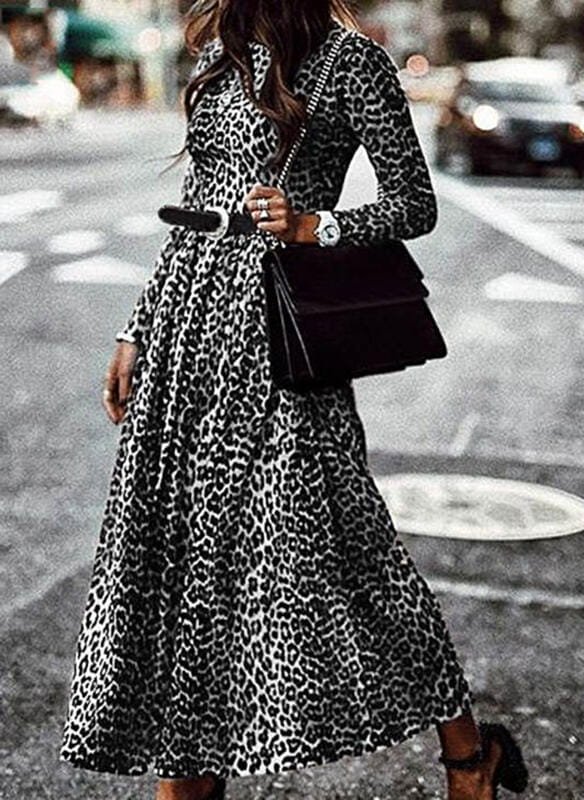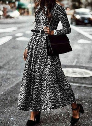 Sukienka maxi z długim rękawem w panterkę